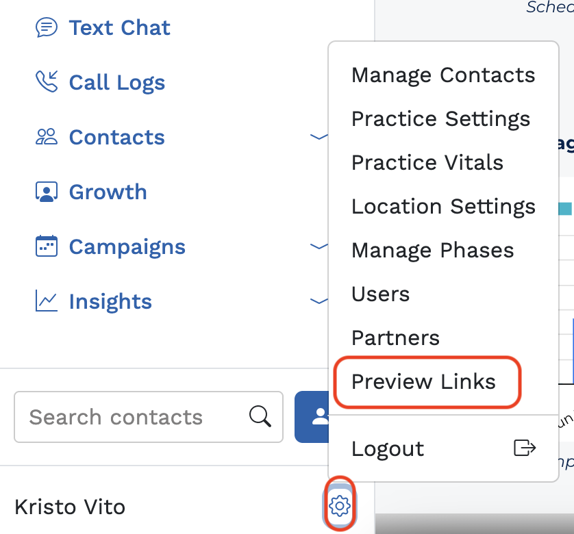 - You can find your Workshop landing pages and your Appointment Scheduler links under the settings gear (Preview Links) in the bottom left of the Breakthrough app:
