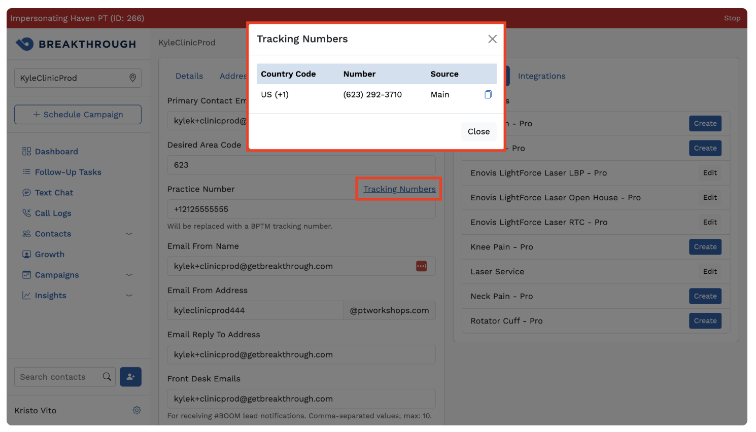 - The location's Breakthrough-assigned tracking number is now accessible by going to Settings > Location Settings > Communication and clicking the new Tracking Numbers link.
